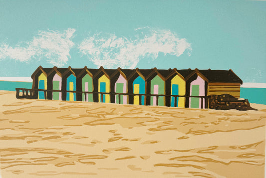 Beach Umbrellas (2023) Linocut print from a limited edition of 5