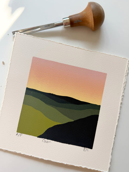 Joshua Sunset (2021) Linocut print from a limited edition of 16